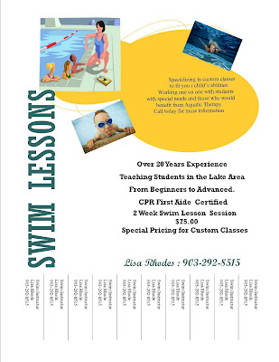 My Aunt Lisa gives swimming lessons if anyone is interested.